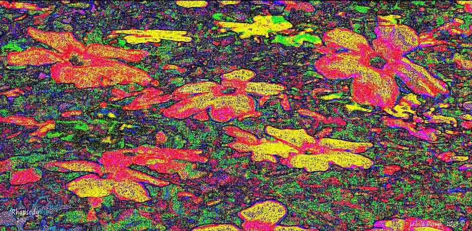 Some studies are arranged in his Studio. 'Solico', the image below of leaves in autumn was photographed in this manner, also 'Wild Poppies', a very popular image, now decorating homes in Adelaide, London and New York. Leonid has also used flower images to create works of art using the computer and hand printing his own images on Hannemule everlasting German etching paper.